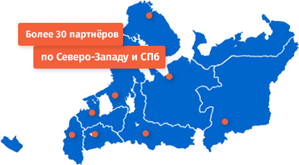 Санкт-Петербург (СПб), Калининград, Архангельск, Череповец, Мурманск, Вологда, Петрозаводск, Сыктывкар, Великий Новгород, Псков, Северодвинск, Ухта, Великие Луки, Гатчина, Выборг.